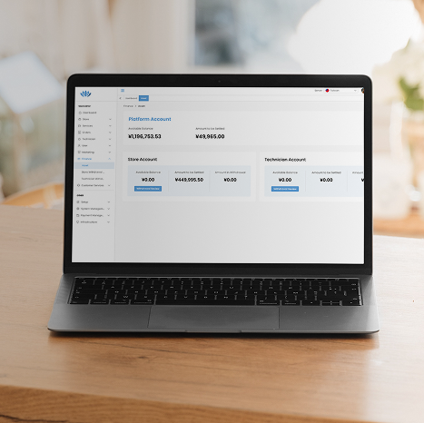 A web-based admin panel for managing platform revenue, store settlements, and technician withdrawals with clear data visualization.