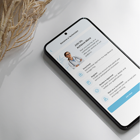 A guided, step-by-step registration flow for technicians to join the platform and verify their skills.Robust Financial Dashboard: